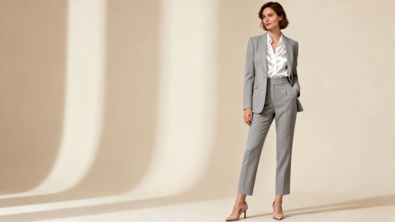 Includes tailored blazers, wrinkle-resistant shirts, high-waisted trousers. Features stretch fabrics and neutral tones for comfort and easy mixing.